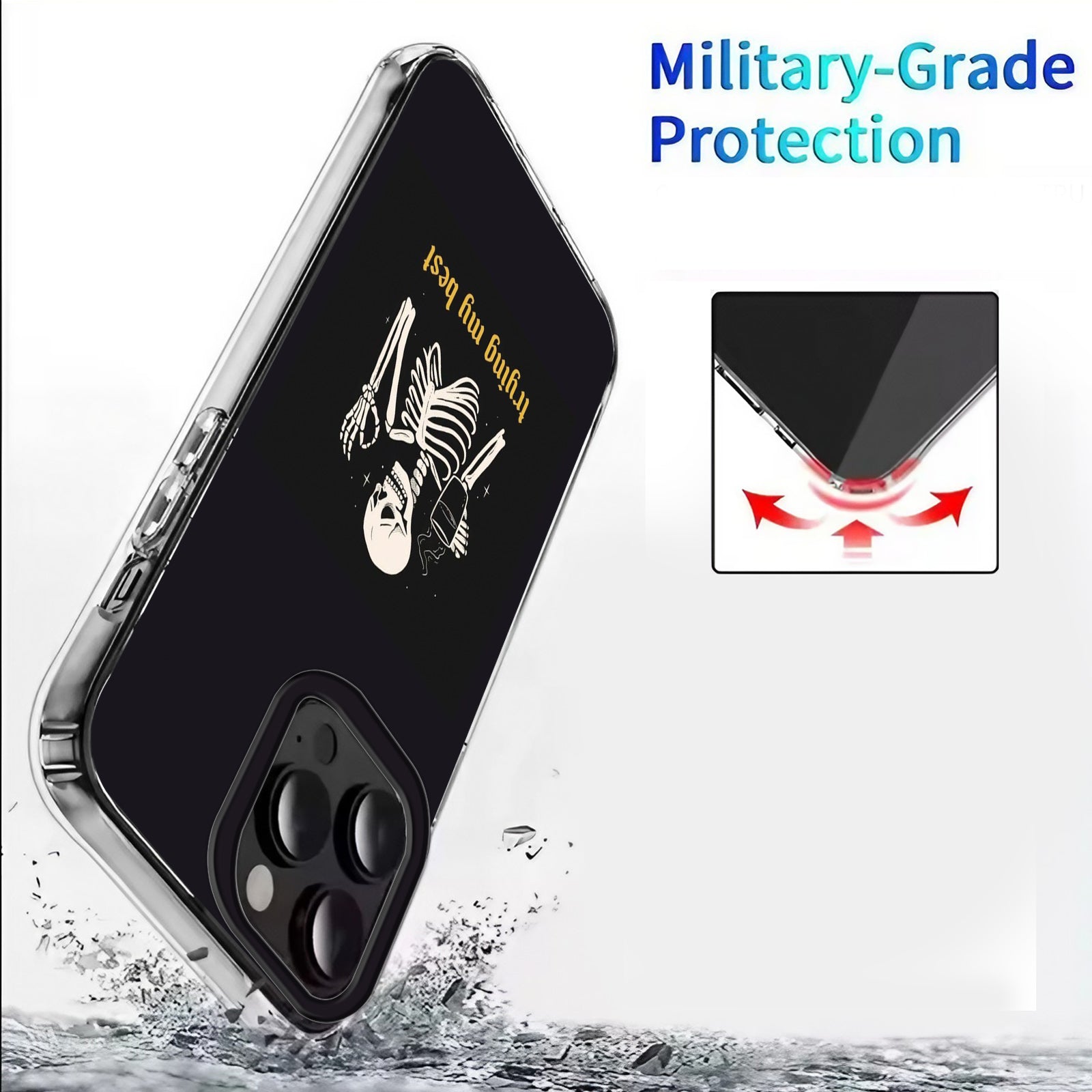 Elevate your phone game with the Trying My Best ☠️✨ Skeleton Phone Case. This trendy and protective cover features a unique design of a skeleton, adding a touch of edgy elegance to your device. Keep your phone safe while making a fashion statement.